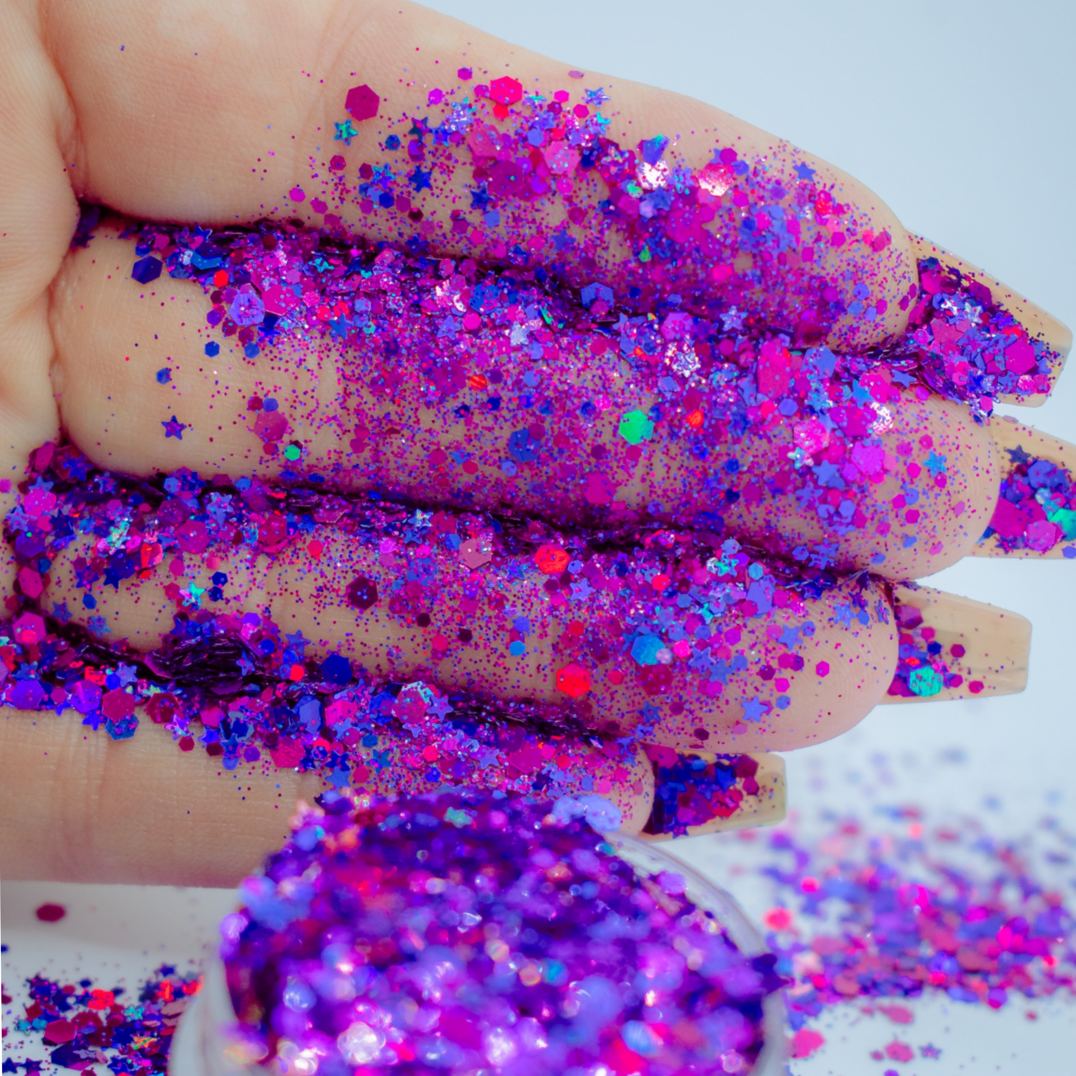 Samantha Larwood Gels are so creamy, glitters are so Christmassy. I was worried about if any colours were going to be similar to what I already had. Every colour is unique! My clients love it because it's a little surprise for them.